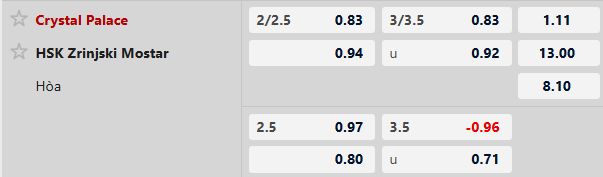 Soi kèo châu á Crystal Palace vs Zrinjski: