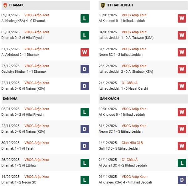 - Damac thắng 2, hòa 3, thua 5 trong 10 trận gặp Al Ittihad gần đây.