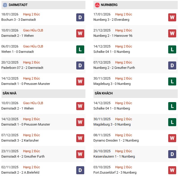 - Trên sân nhà, Darmstadt thắng 3, thua 3 trước Nurnberg.