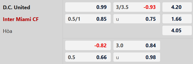 Thông tin tỷ lệ kèo D.C United vs Inter Miami: