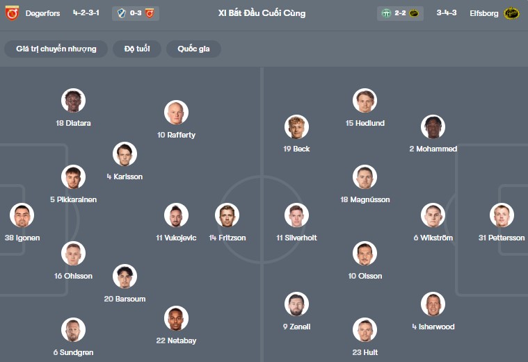 Đội hình dự kiến Degerfors vs Elfsborg: