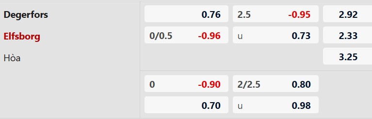 Thông tin tỷ lệ kèo Degerfors vs Elfsborg: