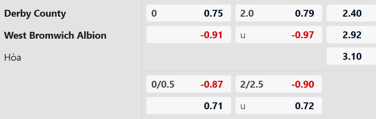 Soi kèo châu Á Derby County vs West Brom: