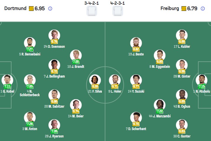 Trong khi đó, Freiburg cho thấy họ là đội bóng không dễ bị đánh bại với khả năng ghi bàn khá đều đặn. Tuy nhiên, hàng phòng ngự lại chưa mang lại sự yên tâm khi thường xuyên để thủng lưới. Thành tích sân khách của Freiburg cũng khá thất thường, với nhiều trận thua xen lẫn những kết quả tích cực. Điều này khiến họ gặp bất lợi khi phải làm khách trước một đối thủ mạnh như Dortmund.