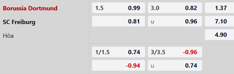 Thông tin kèo bóng đá Dortmund vs Freiburg: