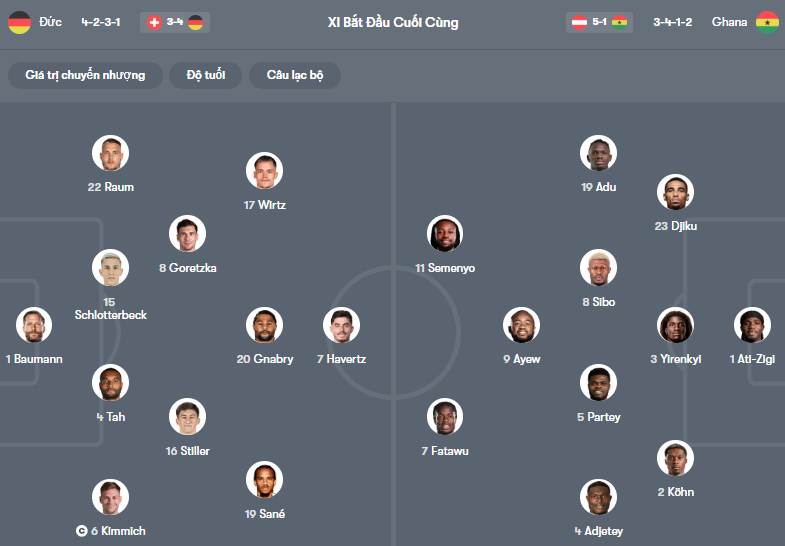Thông tin lực lượng Đức vs Ghana: