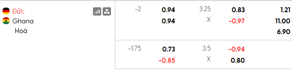 Thông tin tỷ lệ kèo bóng đá Đức vs Ghana: