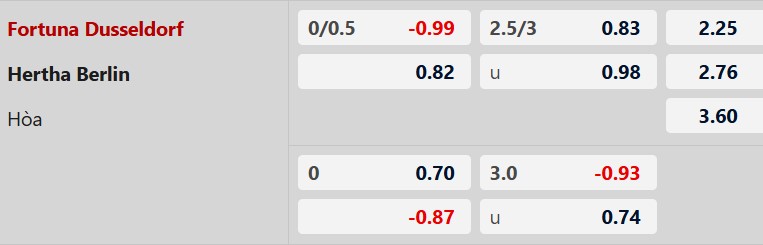 Thông tin tỷ lệ kèo Dusseldorf vs Hertha Berlin: