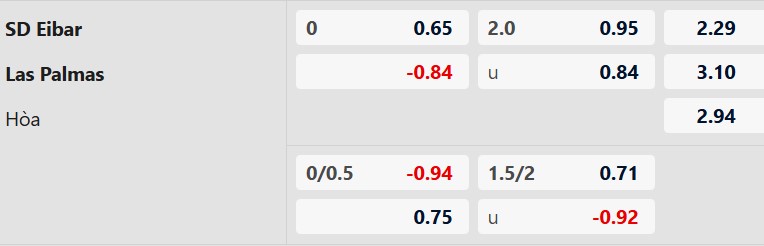 Thông tin tỷ lệ cược Eibar vs Las Palmas: