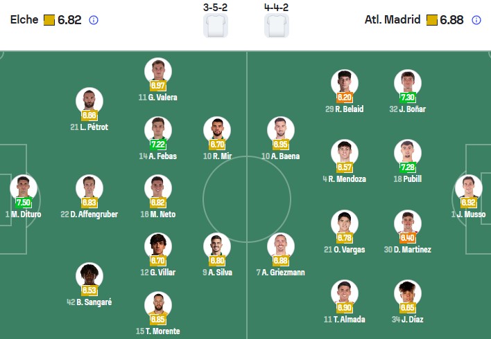 Đội hình dự kiến Elche vs Atletico Madrid: