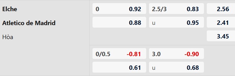 Soi kèo châu Á Elche vs Atletico Madrid: