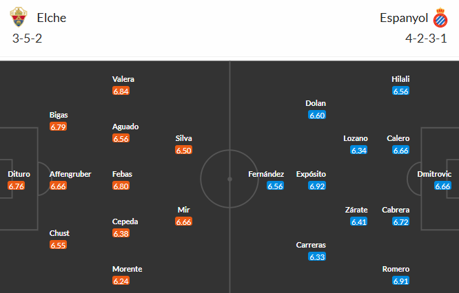 Elche đá sân nhà cũng không hề tốt. Bằng chứng là họ chỉ thắng được 2 trận qua 9 lần tiếp đón các đối thủ tại sào huyệt của mình trong thời gian gần đây tại La Liga. Với phong độ sân nhà như thế, họ khó có đủ sự tự tin cần thiết để hướng đến một chiến thắng trước Espanyol.