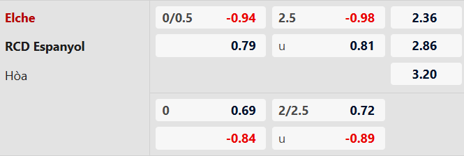 Thông tin tỷ lệ kèo Elche vs Espanyol: