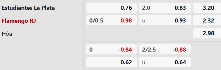 Thông tin tỷ lệ kèo Estudiantes vs Flamengo: