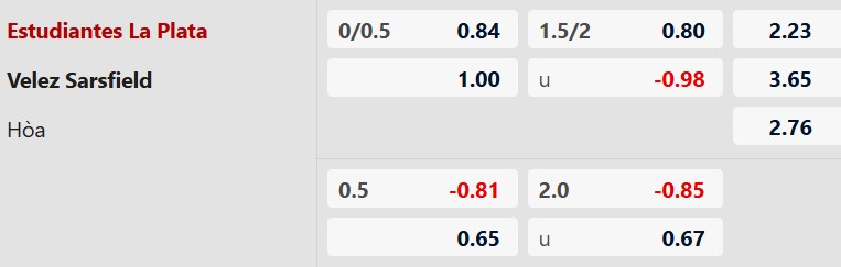 Thông tin tỷ lệ Estudiantes vs Velez Sarsfield: