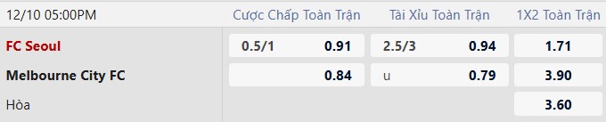 Thông tin tỷ lệ kèo FC Seoul vs Melbourne City: