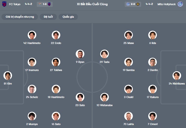 Đội hình dự kiến FC Tokyo vs Mito Hollyhock: