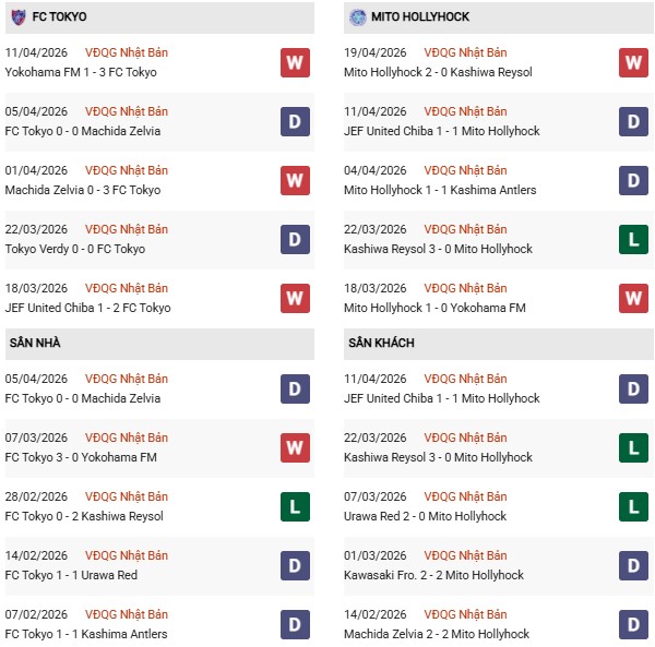 Thống kê phong độ FC Tokyo vs Mito Hollyhock: