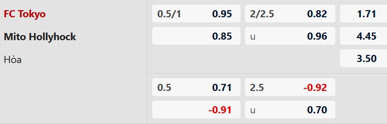Thông tin tỷ lệ kèo FC Tokyo vs Mito Hollyhock: