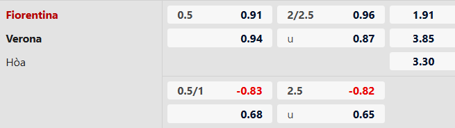 Việc Fiorentina được xếp cửa trên với mức chấp 1/2 bàn cho thấy giới chuyên môn vẫn đặt niềm tin nhất định vào lợi thế sân nhà và khát khao chiến thắng của đội bóng áo tím. Tuy nhiên, với phong độ nghèo nàn từ đầu mùa và khả năng ghi bàn hạn chế, Fiorentina khó có thể tạo ra thế trận áp đảo. Trong khi đó, Verona thường chơi khá thận trọng trước các đối thủ trực tiếp cạnh tranh trụ hạng, vì vậy kịch bản đội khách giành điểm là hoàn toàn khả thi.