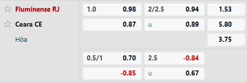Thông tin tỷ lệ Fluminense vs Ceara: