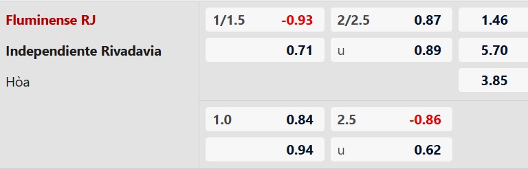 Soi kèo châu Á Fluminense vs Ind. Rivadavia: