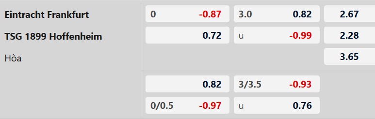 Soi kèo châu Á Frankfurt vs Hoffenheim: