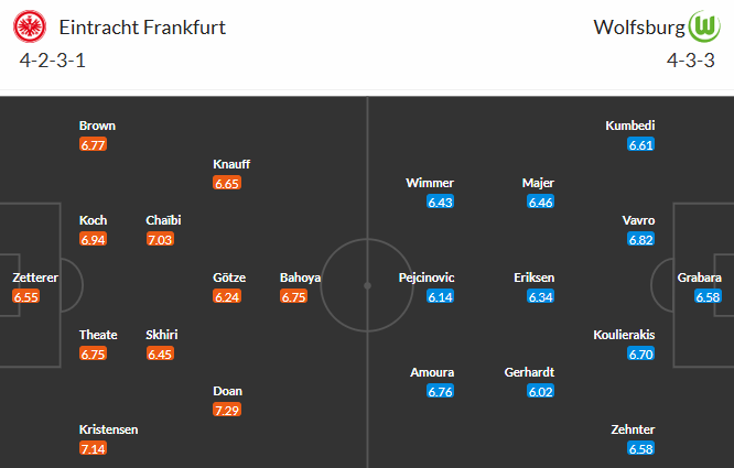 Đội hình dự kiến Frankfurt vs Wolfsburg: