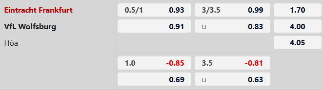 Thông tin tỷ lệ kèo bóng đá Frankfurt vs Wolfsburg: