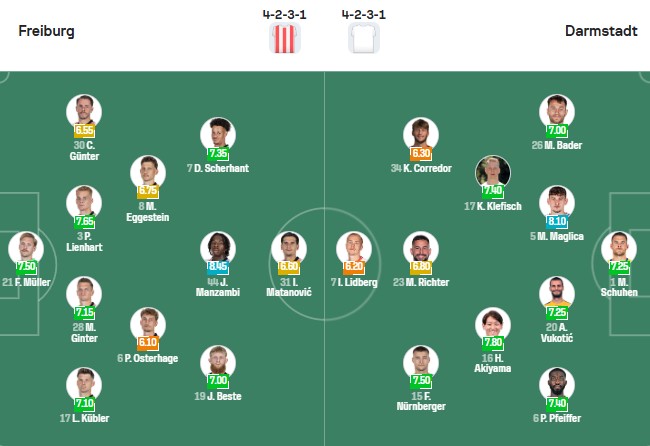 Đội hình dự kiến Freiburg vs Darmstadt: