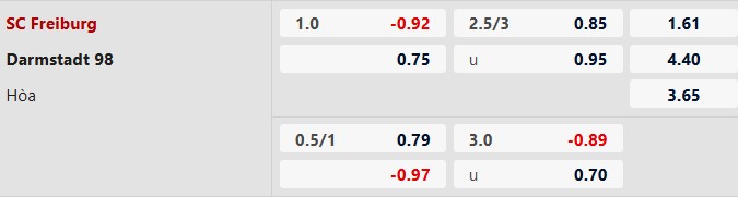 Thông tin tỷ lệ kèo Freiburg vs Darmstadt: