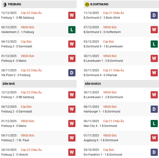 Số liệu thống kê về Freiburg gặp Dortmund: