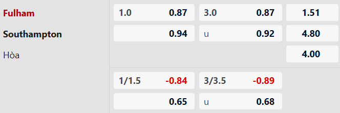 Thông tin tỷ lệ bóng đá Fulham vs Southampton: