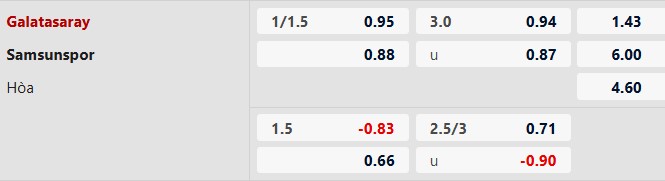 Soi kèo châu Á Galatasaray vs Samsunspor: