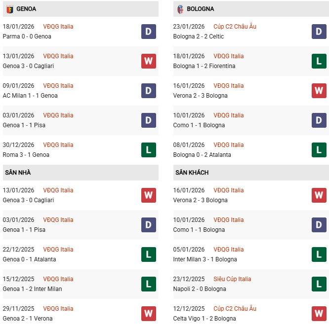 Dự đoán kết quả Genoa vs Bologna: