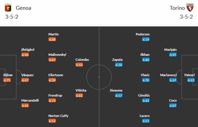 Thông tin tỷ lệ Genoa vs Torino: