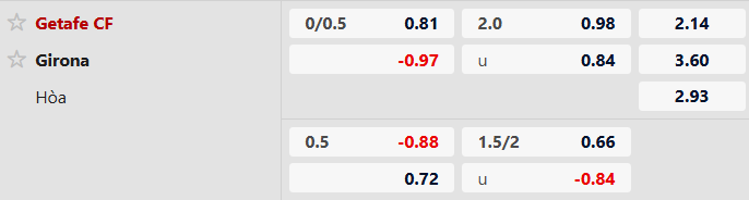 Girona lại tỏ ra yếu thế khi làm khách tại sân của Getafe – họ đã thua 3/4 gần nhất hành quân tới đây và thậm chí không ghi nổi bàn nào trong 2 trận. Với lối chơi thiên về phòng ngự chắc chắn của Getafe cùng hàng công thiếu hiệu quả của Girona, khả năng bùng nổ bàn thắng là không cao. Mức kèo Tài Xỉu được ấn định ở ngưỡng 2 hòa, vì vậy lựa chọn Xỉu sẽ là phương án an toàn.