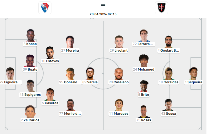 Đội hình dự kiến Gil Vicente vs Casa Pia AC: