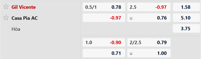 Thông tin tỷ lệ kèo Gil Vicente vs Casa Pia AC: