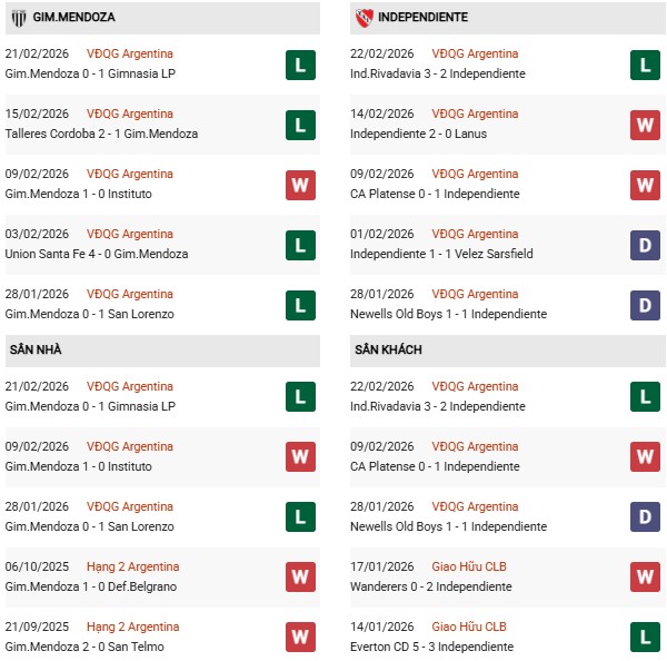- Gim. Mendoza thua 1-2 trước Independiente ở Cúp QG năm 2025.