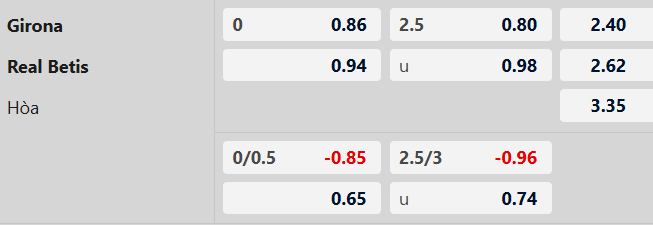 Thông tin tỷ lệ kèo Girona vs Betis: