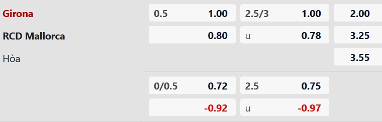 Mức chấp 1/2 bàn là tỷ lệ phản ánh chính xác ưu thế sân nhà của Girona và sự yếu kém khi đi du đấu của Mallorca. Dù cả hai đội đều đang có phong độ không ổn định, nhưng Girona luôn biết cách tạo nên sự khác biệt khi được thi đấu tại Montilivi. Trong một trận đấu mà đội thua sẽ phải đối mặt với nguy cơ rớt hạng cực cao, kinh nghiệm và lợi thế bãi cỏ quen thuộc sẽ giúp Girona vượt qua rào cản này.