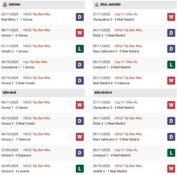 Girona ghi bàn trong cả 5 trận gần đây trong đó 3 trận chỉ ghi được 1 bàn mỗi trận. Hàng thủ của họ chơi khá tệ khi để thủng lưới 4 trên 5 trận đấu gần nhất, trận thua đậm nhất thủng lưới 3 bàn. Bên kia chiến tuyến, Real Madrid ghi bàn 3/5 trận đấu gần đây nhưng đều ghi từ 2 bàn trở lên mỗi trận. Hàng thủ của đội khách đã để thủng lưới 4 trong 5 trận đấu gần đây.