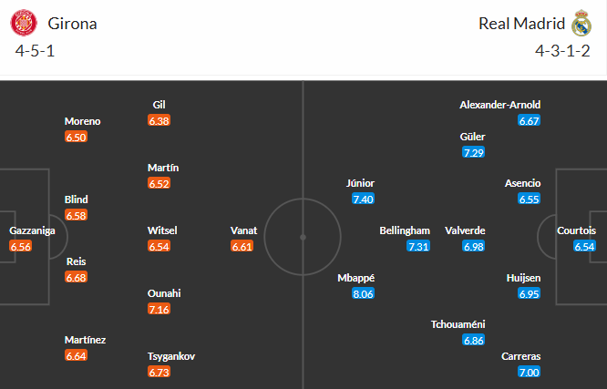 Sau 13 vòng đấu đầu tiên, Girona chỉ ghi được 12 bàn, thuộc top 3 đội có hàng công khiêm tốn nhất. Trong khi đó, số bàn thua mà họ phải nhận gấp đôi số bàn thắng. Lúc này, Girona đã phải nhận tới 25 bàn thua, là hàng thủ tệ nhất giải. Hàng thủ kém cỏi này sẽ khó mà đứng vững trước hàng công cực khủng của Real.