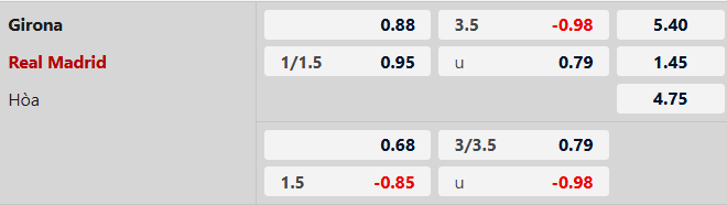 Thông tin tỷ lệ kèo bóng đá Girona vs Real Madrid: