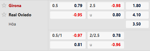 Nhìn rộng hơn, Girona đang gặp vấn đề ở khâu phòng ngự khi để thủng lưới trong 5/6 trận gần nhất, nhận tổng cộng 9 bàn thua. Tuy nhiên, thành tích sân nhà của họ vẫn rất đáng tin cậy, bất bại trong 2 trận gần nhất tại Montilivi, và quan trọng hơn, Girona chưa thua Real Oviedo trong 5 lần đối đầu gần đây.