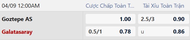Thông tin tỷ lệ kèo Goztepe vs Galatasaray:
