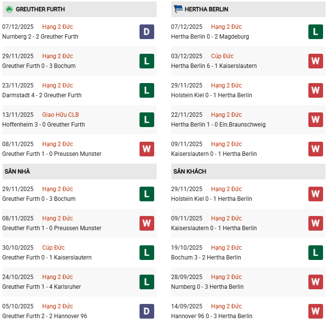 Thống kê phong độ Greuther Furth vs Hertha Berlin: