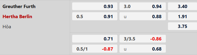 Thông tin tỷ lệ bóng đá Greuther Furth vs Hertha Berlin: