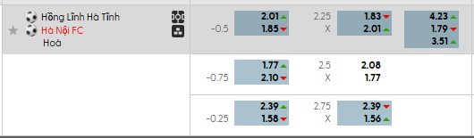Thông tin tỷ lệ cược Hà Tĩnh gặp Hà Nội FC: